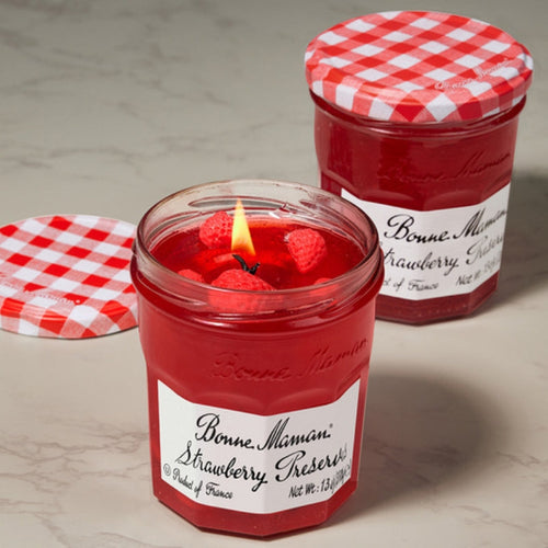 As the now-cooled wax is still hardening, adorn the top of the candle with the wax strawberries.