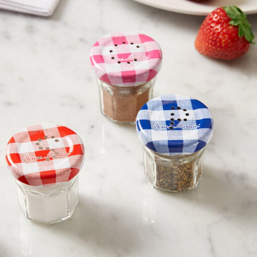 - Using a permanent marker, use dots to mark your lid with the pattern of your choice. (We’ve marked our salt with an S, our pepper with a P, and our cinnamon-sugar with a C.)