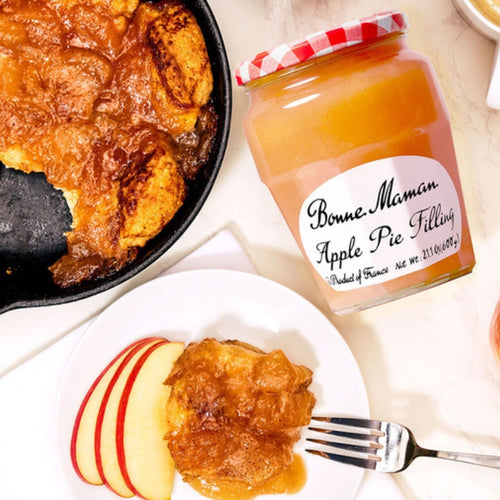 - Spoon 1.5 cups of Bonne Maman Apple Pie Filling over and between the biscuits.