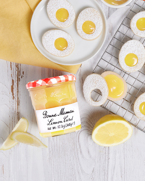 - Dust the tops of each cut-out round with powdered sugar. Add 1 tsp Lemon Curd to the bottom halves, and place powdered tops on lemon-curd bottoms to form sandwich cookies.