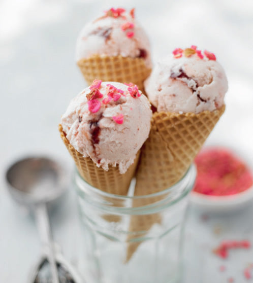 - Add the remaining cream mixture and freeze for at least 3 hours (depending on depth of container). Serve in cones or scoops with crushed, sugared rose petals sprinkled on top, optional.