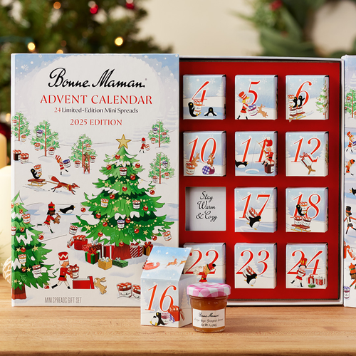 Gift the joy of Christmas with the 2025 Limited-Edition Bonne Maman Advent Calendar—a charming collection of 24 mini jars filled with exclusive flavors of preserves and fruit spreads. Beautifully packaged and perfect for sharing, it’s a delightful way for families to slow down, savor the season, and create a daily moment of connection together.