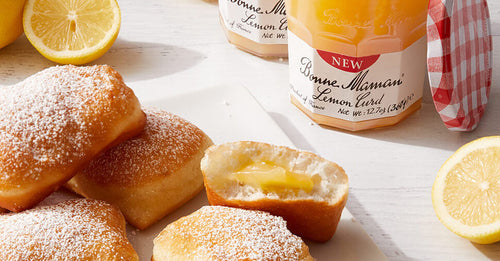 - When cooled slightly, fit a small piping bag with an 1/8” diameter plain piping tip and fill with Lemon Curd. Fill each beignet with Lemon Curd, dust with powdered sugar and serve.